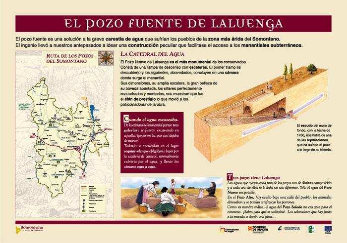 Dentro de la propia localidad de Laluenga existen dos pozos más (el Pozo Alto y el Salado). Por ello se ha localizado aquí el Centro de Interpretación de los Pozos fuente del Somontano, un pequeño espacio en donde el visitante descubrirá las claves para comprender y valorar estos singulares elementos de nuestra arquitectura hidráulica, repartidas por todo el territorio.