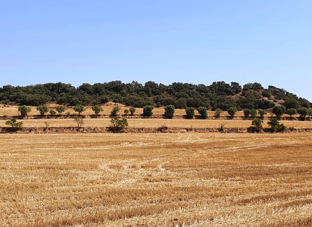 El paisaje característico del municipio de Laluenga es una amplia llanura, relajante y viva, que estacionalmente cambia de color dependiendo del momento en el que se encuentren sus campos de cereales, sus campos de olivos y sus almendros.